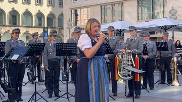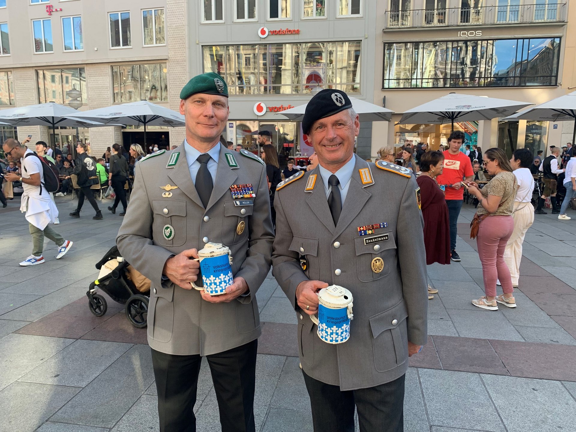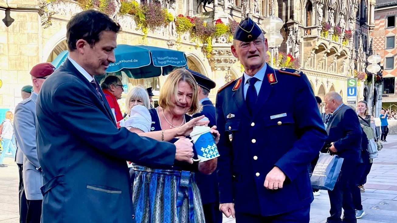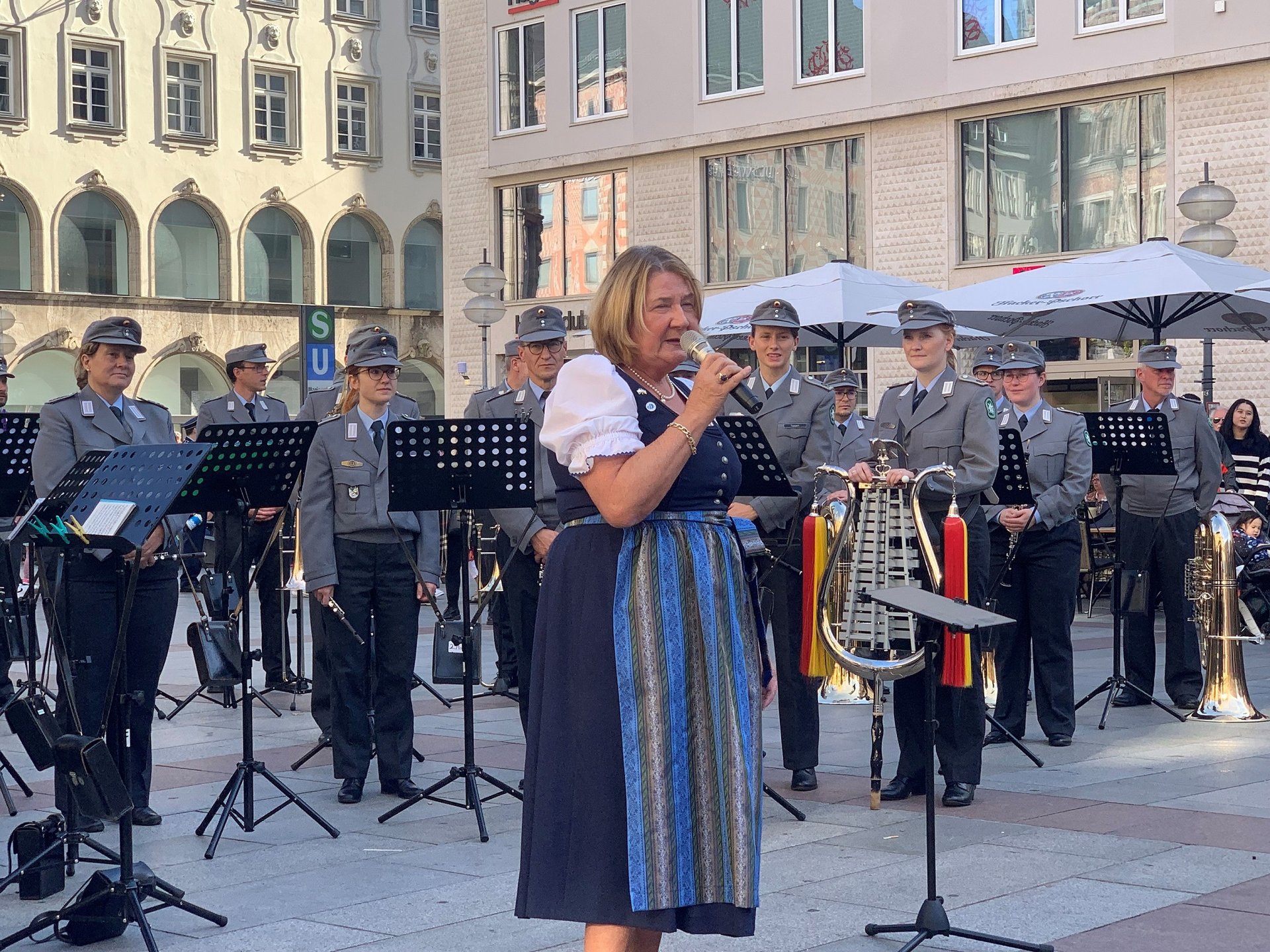 Es war eine wahrhaft beeindruckende Veranstaltung am 17. Oktober 2022 im Herzen unserer Landeshauptstadt München. Auf dem Marienplatz drängten sich unzählige Menschen und verweilten bei unserem einstündigen Standkonzert mit einem großartig aufgelegten Gebirgsmusikkorps aus Garmisch Partenkirchen unter der Leitung von Hauptmann Rudolf Piehlmayer. Die mitmoderierten Informationen zur Friedensarbeit unseres Volksbundes wurden interessiert aufgenommen und unsere prominenten Sammler aus der Politik und Bundeswehr, dem Reservistenverband und Traditionsvereinen freundlich bedacht.