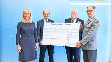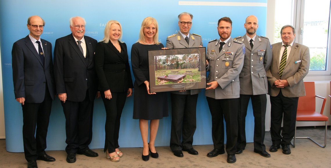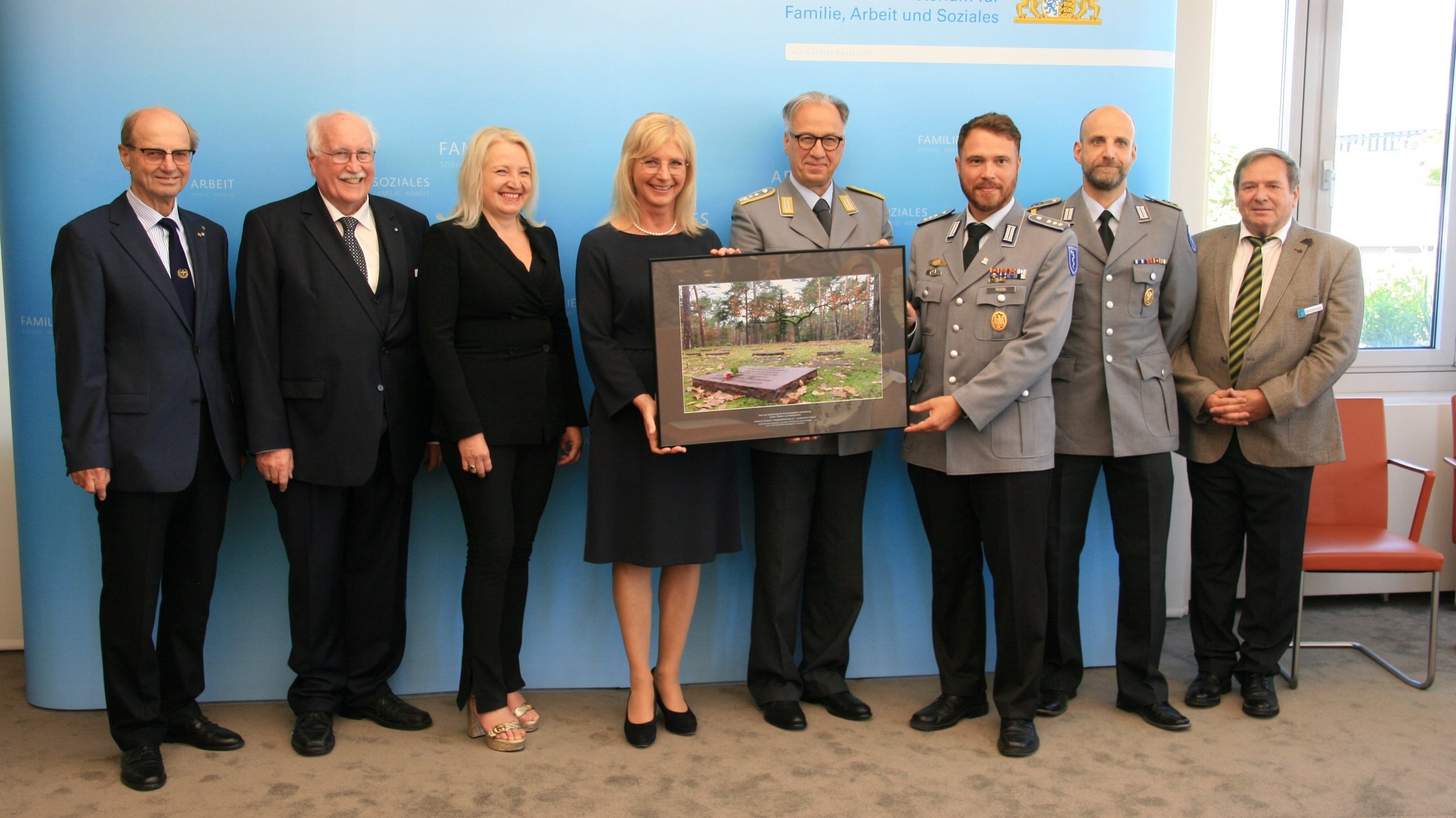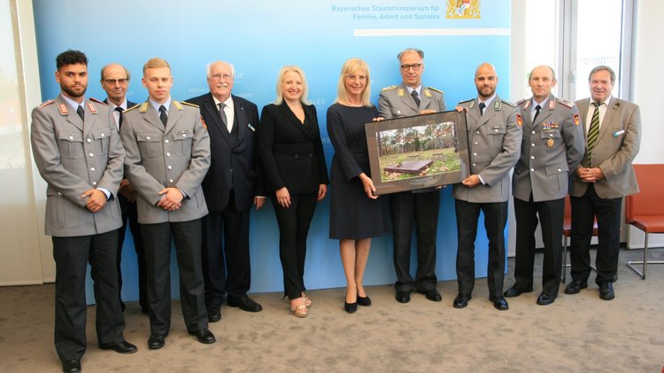 Als Zeichen der Verbundenheit und des Dankes für die Unterstützung überreichte Volksbund-Landesvorsitzender, Regierungspräsident a.D. Wilhelm Wenning, die Großaufnahme auch als Zeichen des Danks an Ministerin Ulrike Scharf sowie an das Landeskommando Bayern, die Arbeitsgemeinschaft der Reservisten-, Soldaten- und Traditionsverbände in Bayern, die Bayerische Kameraden- und Soldatenvereinigung (BKV), den Verband der Reservisten der Deutschen Bundeswehr (VdRBw) und den Bayerischen Soldatenbund 1874 (BSB). Mit sehr persönlichen Worten dankte BSB-Präsident Oberst a.D. Richard Drexl, dessen Onkel auf der Kriegsgräberstätte Halbe ruht.