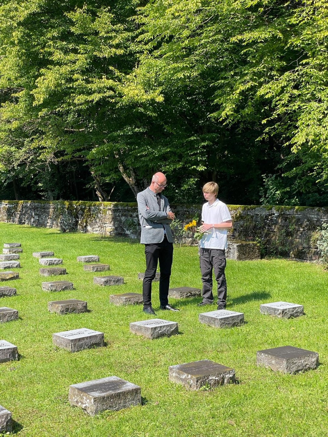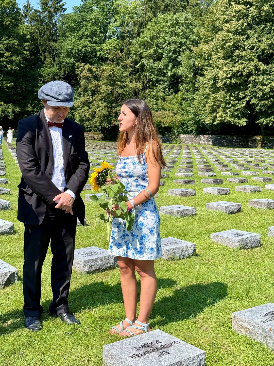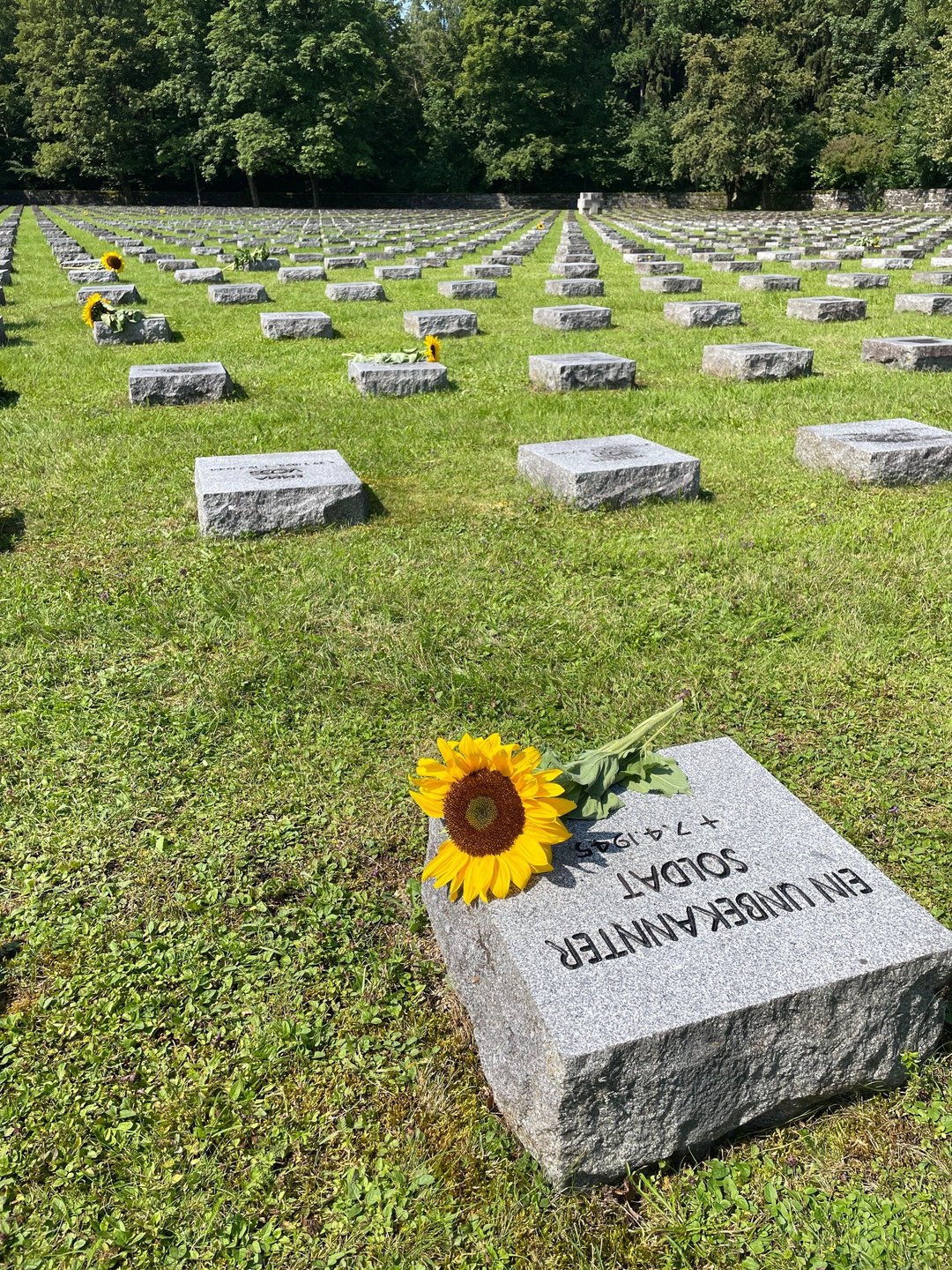 Gemeinsam mit den Gästen ging man dann zu den Gräbern, legte Sonnenblumen nieder und berichtete von Einzelschicksalen, die im Rahmen der Workshoparbeit besonders berührt hatten. Anschließend klang die Veranstaltung bei einer Brotzeit und guten Gesprächen aus. Wir freuen uns auf die nächste Internationale Jugendbegegnung im Sommer 2026!