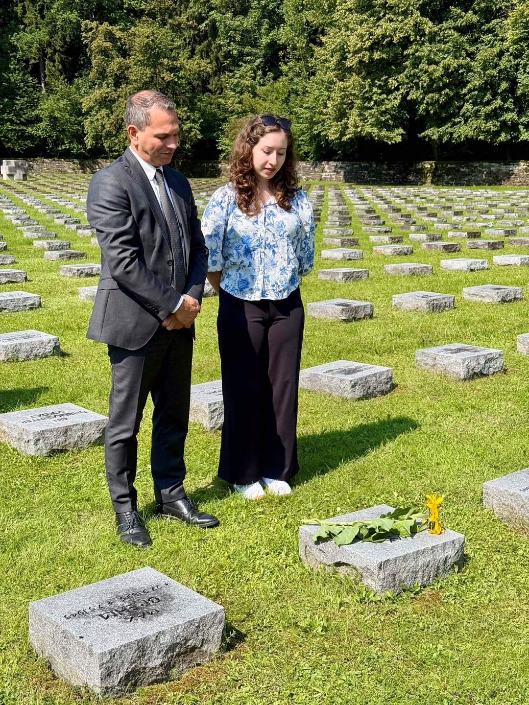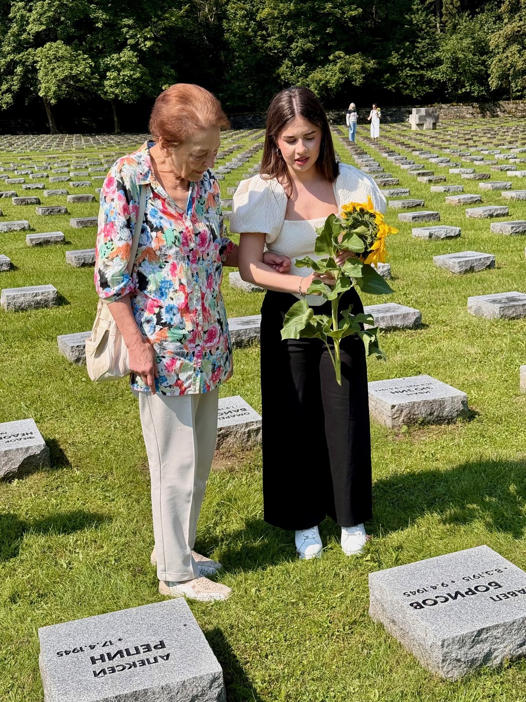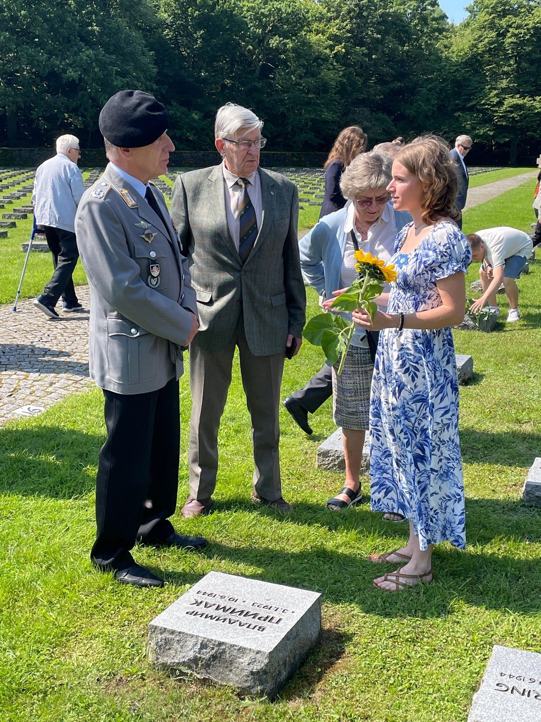 Gemeinsam mit den Gästen ging man dann zu den Gräbern, legte Sonnenblumen nieder und berichtete von Einzelschicksalen, die im Rahmen der Workshoparbeit besonders berührt hatten. Anschließend klang die Veranstaltung bei einer Brotzeit und guten Gesprächen aus. Wir freuen uns auf die nächste Internationale Jugendbegegnung im Sommer 2026!