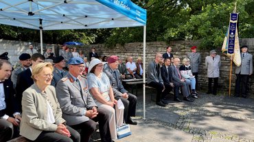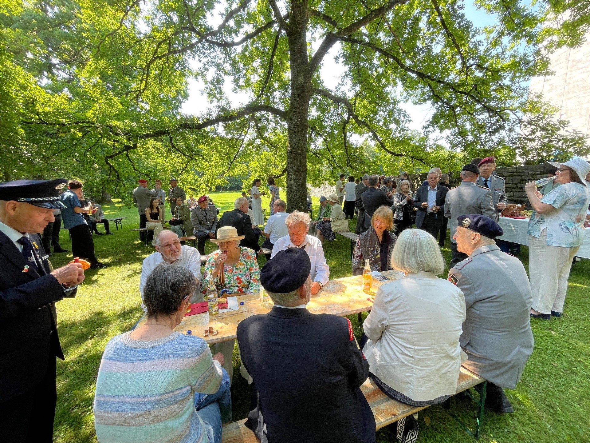 Mehr als 80 Persönlichkeiten aus Politik und Gesellschaft, Angehörige des Konsularischen Korps, Vertreter der Bundeswehr, der Reservisten- und Traditionsverbände und natürlich zahlreiche Förderer des Volksbunds kamen zusammen, um den jungen Teilnehmenden ihren Respekt für ihr Friedensprojekt zu zollen. Es waren folgende Behörden, Institutionen, Firmen und Verbände und Vereine vertreten: