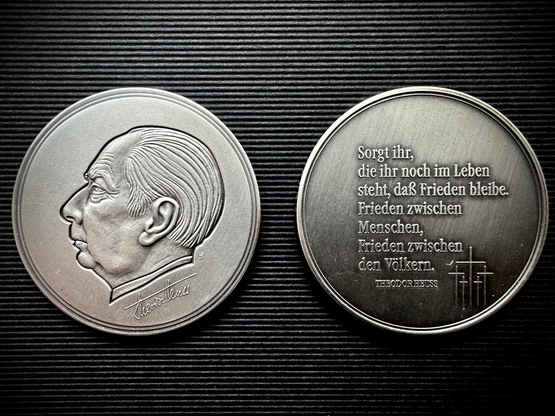 Die Vertreter der ausgezeichneten Verbände der Bundeswehr, US-Army sowie des Reservistenverbands und der Traditionsverbände konnten als Zeichen des Dankes stellvertretend für ihre Kameradinnen und Kameraden die Theodor-Heuss-Medaille des Landesverbandes entgegennehmen. Sie trägt neben dem Konterfei des ersten Bundespräsidenten und Volksbund-Schirmherrn umseitig dessen Zitat „Sorgt ihr, die ihr noch im Leben steht, daß Frieden bleibe. Frieden zwischen Menschen, Frieden zwischen den Völkern.“