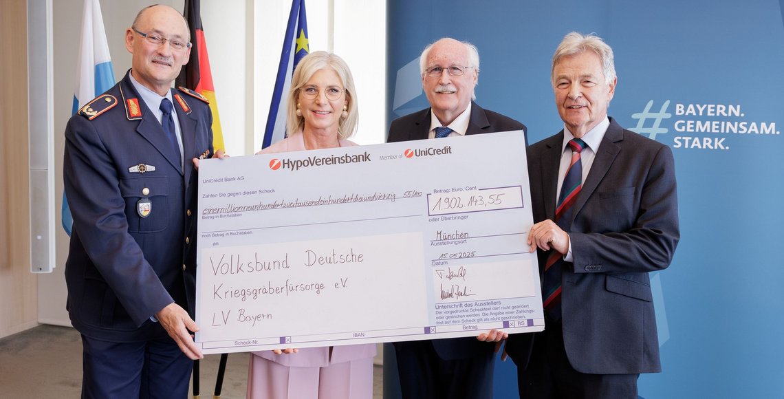 Dank der großzügigen Spenden aus der Bevölkerung konnten bei der Haus-, Straßen- und Friedhofssammlung 2024 des Volksbundes Deutsche Kriegsgräberfürsorge e.V. in Bayern ein bundesweites Spitzenergebnis von 1,902 Millionen Euro erzielt werden. Anlässlich eines Empfanges im Bayerischen Staatsministerium für Familie, Arbeit und Soziales am 15. Mai 2025 in München würdigten Staatsministerin Ulrike Scharf, Weitere Stellvertreterin des Ministerpräsidenten, der Kommandeur im Landeskommando Bayern, Brigadegeneral Thomas Hambach, der Vorsitzende des Volksbund-Landesverbandes, Regierungspräsident a.D. Wilhelm Wenning, und der Präsident der Arbeitsgemeinschaft der Reservisten-, Soldaten- und Traditionsverbände in Bayern (ARST), MdL a.D. Joachim Hanisch, die hervorragende Hilfe seitens der Bundeswehr, der Reservisten und vieler Altgedienter bei der Sammlung. Darüber hinaus wurde deren Engagement bei der Gedenkkerzen-Aktion, Workcamps, freiwilligen Arbeitseinsätzen auf deutschen Soldatenfriedhöfen im In- und Ausland, am Volkstrauertag und bei Wohltätigkeitskonzerten gelobt.